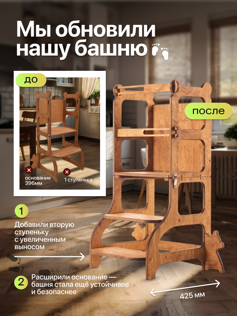 Мы обновили башню! Теперь у неё две удобные ступеньки, по которым малыш может самостоятельно залезать наверх.