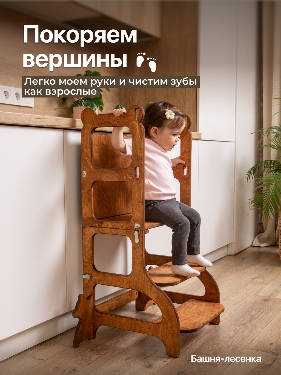 Хорошая башня, помогает обучить ребёнка самостоятельности, освобождает руки мамы при Мойке ручек, готовке. Используем в кухне и уборной.