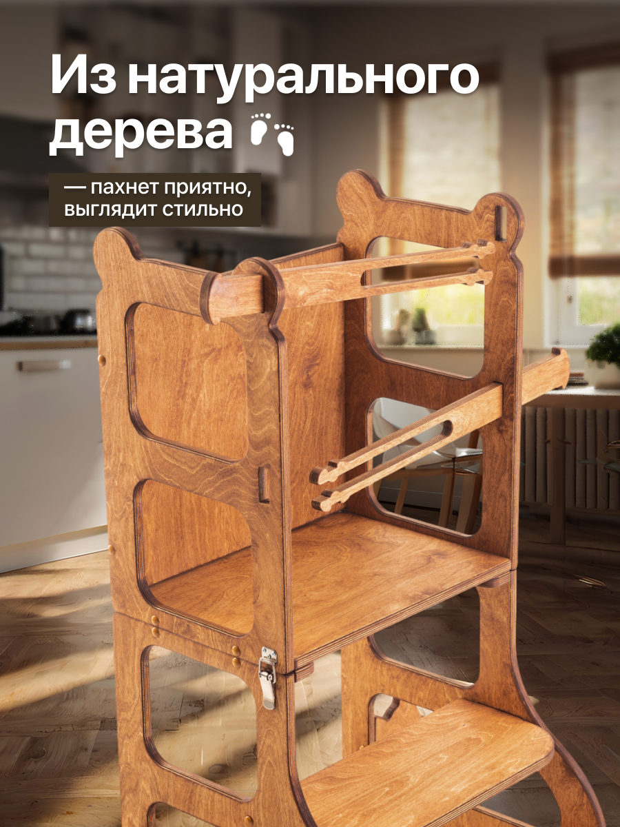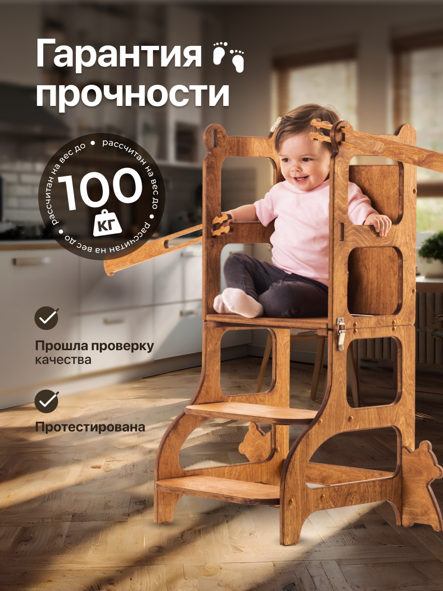 Очень устойчивый, многофункциональный! Изначально покупался, как башня помощника, но сын не вылазить из неё, в режиме стульчика и столика! Очень удобно сделана конструкция! Муж собрал за считаные минуты. Порекомендовали к покупке своим друзьям! Сын 1,1 быстро понял, как залазить и слазить.