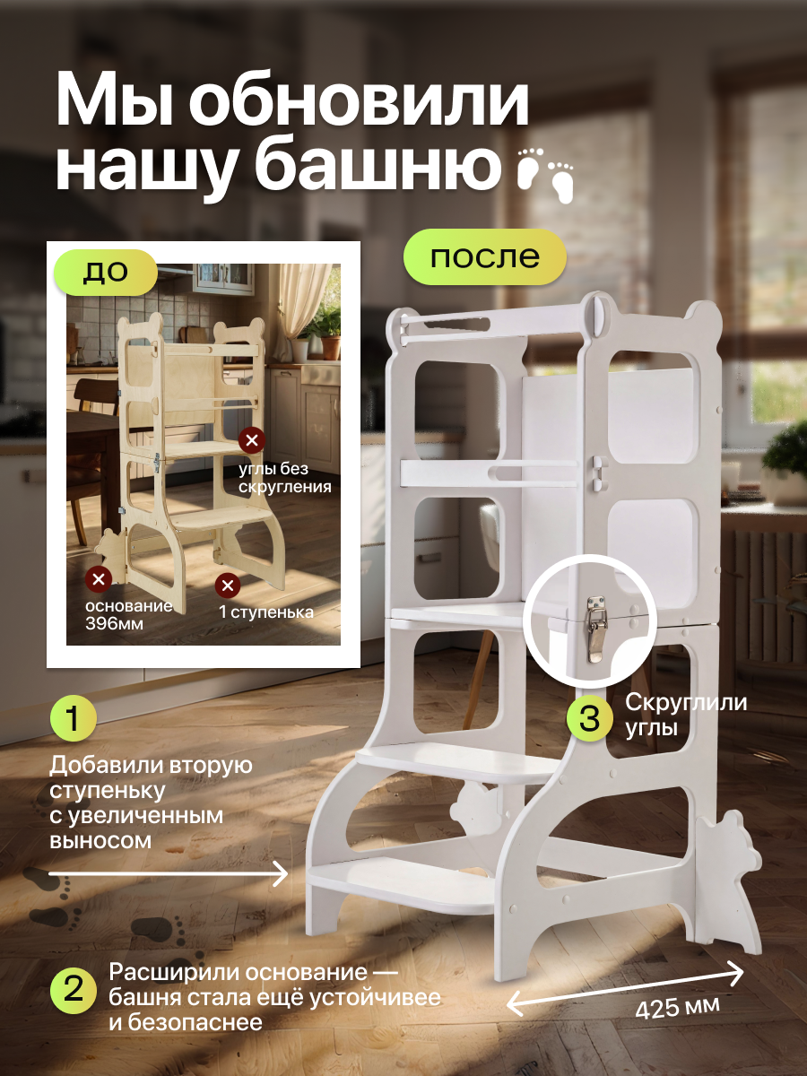 Мы обновили башню! Теперь у неё две удобные ступеньки, по которым малыш может самостоятельно залезать наверх.