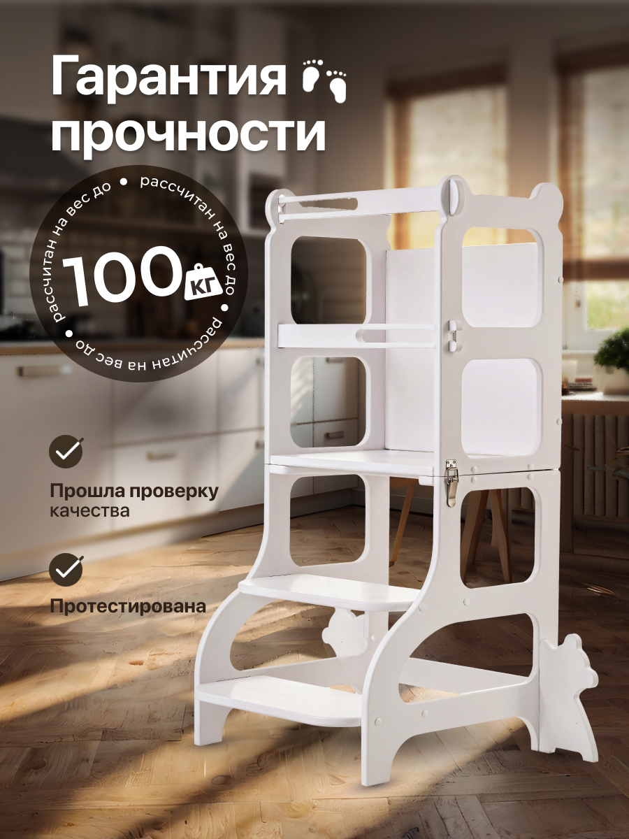 Очень устойчивый, многофункциональный! Изначально покупался, как башня помощника, но сын не вылазить из неё, в режиме стульчика и столика! Очень удобно сделана конструкция! Муж собрал за считаные минуты. Порекомендовали к покупке своим друзьям! Сын 1,1 быстро понял, как залазить и слазить.